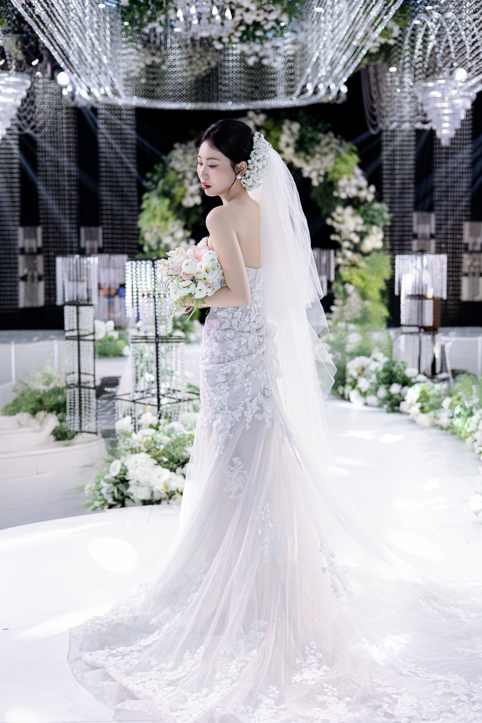 在我们家试妆试纱的小仙女🧚♀️ 鱼尾真的是她的本命纱喔!